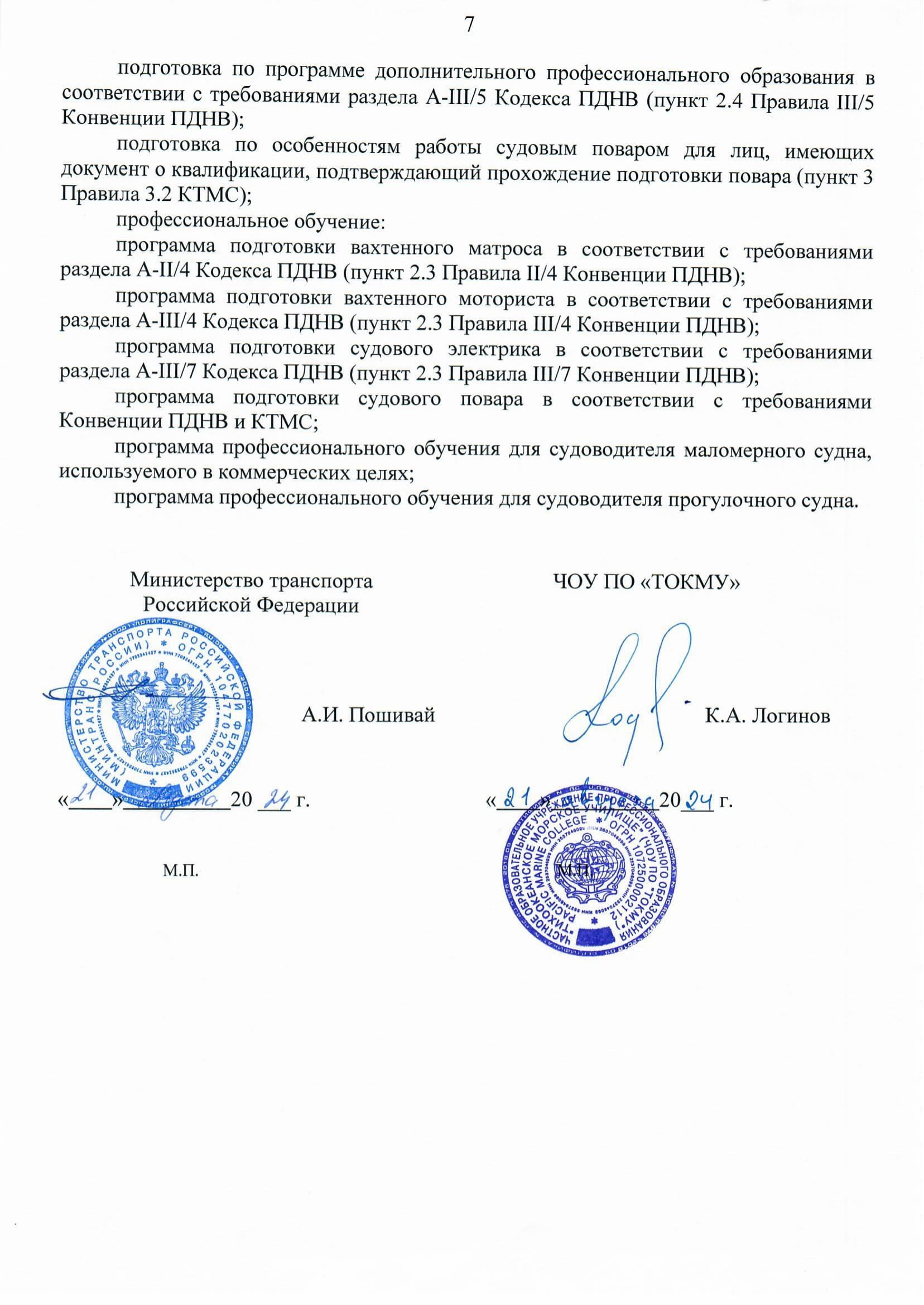 5. Соглашение о признании Министерства транспорта Российской Федерации в области подготовки членов экипажей морских судов №10-38-20 от 21 августа 2024 года: